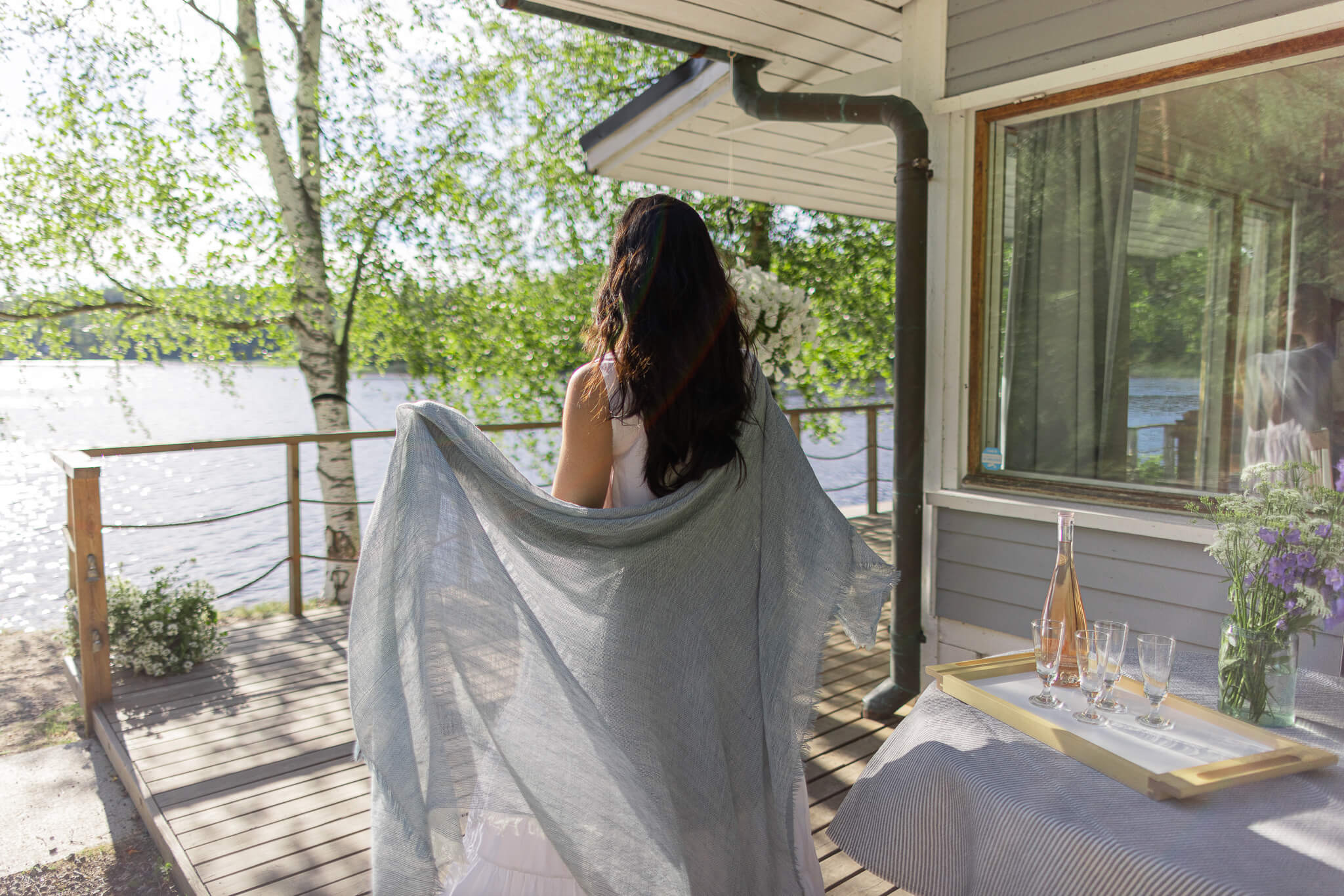 Villa Paratiisin iso terassi houkuttelee nauttimaan kesästä. Täällä tilaa nauttia järvenrantatunnelmasta ja kerätä talven varalle aurinkoenergiaa.
